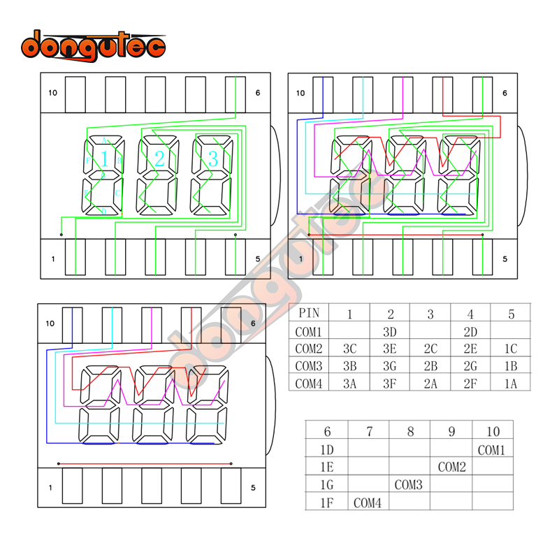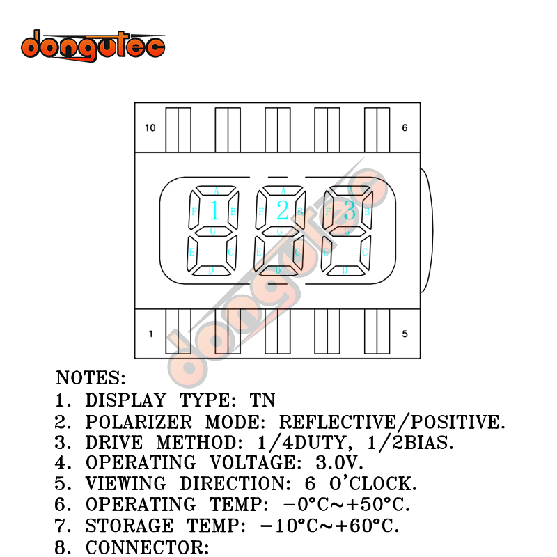 10PIN TN Positive 3-Digits Segment LCD Panel 3.0V Digital Tube Display