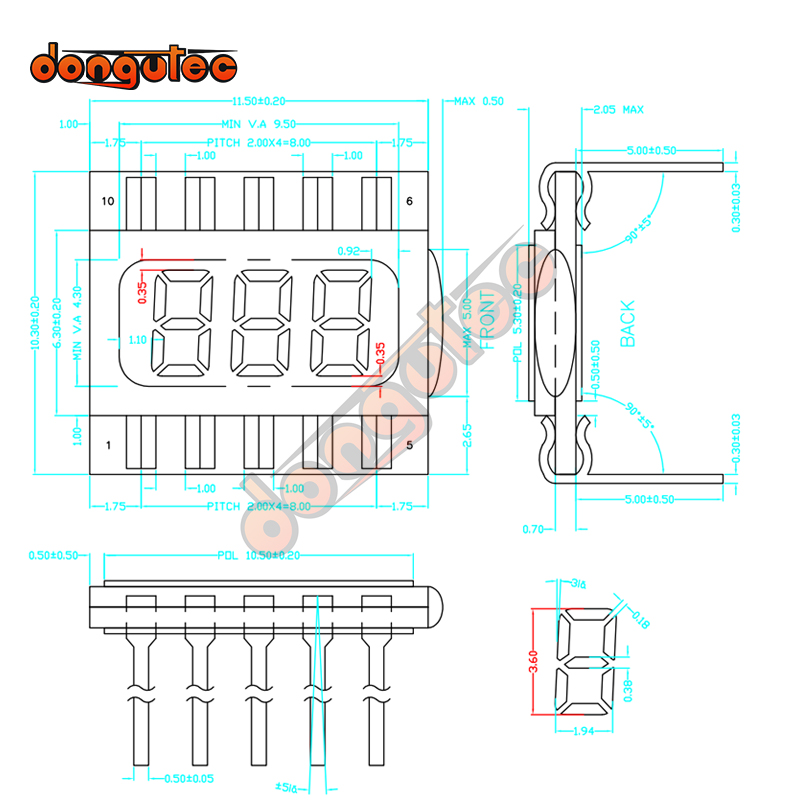 Dimensions: 11.5*10.3/6.3*2MM, 10PIN.