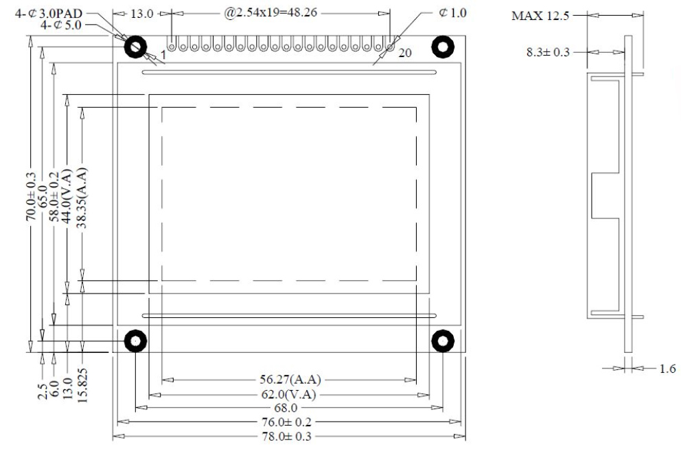 Dot Matrix: 128×64 Dots